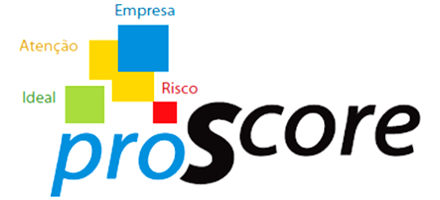 As cores utilizadas no logotipo ProScore remetem à escala de cores da tabela de classificação utilizada pela empresa. A disposição e volume de cada cor forma o símbolo gráfico que se integra ao nome.